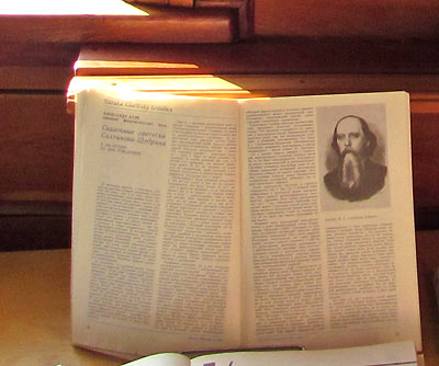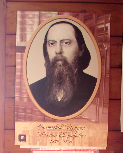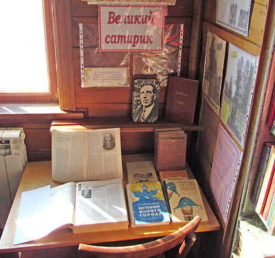 К 190-летию со дня рождения Михаила Евграфовича Салтыкова-Щедрина в библиотеке оформлена выставка-портрет «Великий сатирик». Литература с этой выставки пользуется спросом со стороны учащихся 10 класса СОШ (его произведения изучаются по учебной программе этого класса).