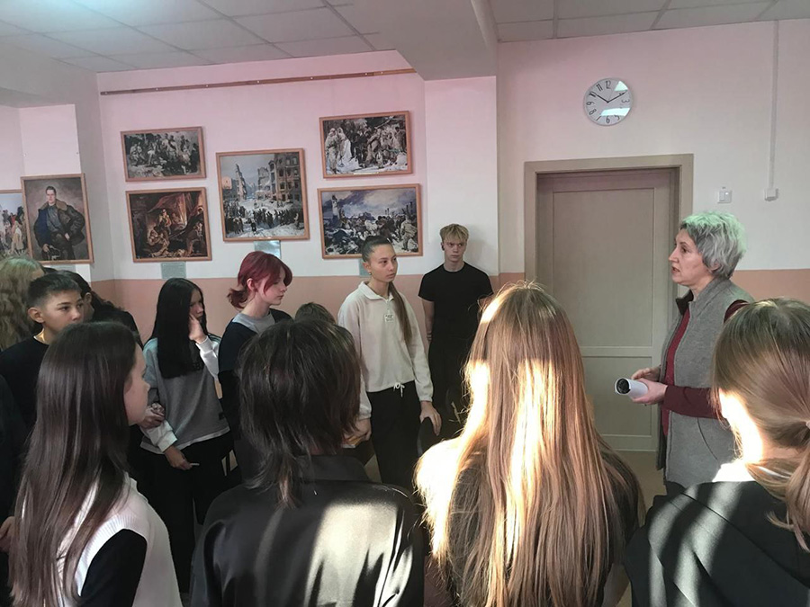 На выставке представлено 14 репродукций картин, оригиналы которых находятся в фондах Русского музея. Большинство из них освещает героические страницы Великой Отечественной войны, это яркие свидетельства мужества, стойкости и самоотверженности наших дедов и прадедов, сражавшихся за Родину и победивших в этой страшной войне.